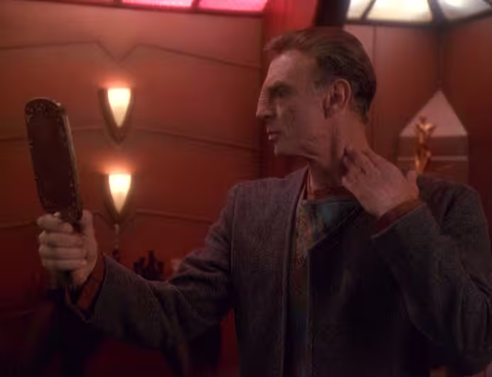 Vaughn Armstrong - rekordzista, który zagrał już wiele ról w różnych serialach (dwukrotnie grał Kardasjan, trzykrotnie Klingonów, raz Vidiianina, raz eks-Borga, raz Hirogena i raz Romulanina, pojawia się też jako Ziemianin - admirał Forrest - w Enterprise oraz w Mirrorze jako kapitan Forrest).