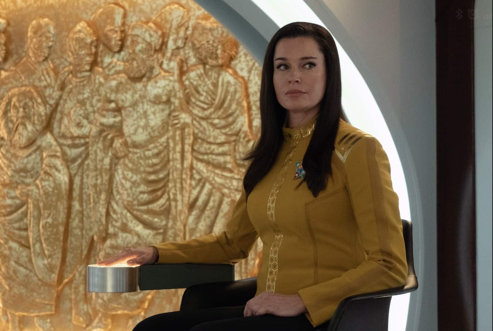 Drugi plan to koncepcja tego sądu. O ile w TOS uzasadnienie ma koncepcja takiego trybunału ze składem z kilku kapitanów z pobliskich okrętów lub akurat jednoosobowego rodzaju arbitrażu jak w słynnym The Measure of a Man - bo to były instytucje potrzebne natychmiast na miejscu. O tyle koncepcja sądu w ramach UFP i Gwiezdnej Floty, gdzie mamy wielomiesięczne dochodzenie i planową rozprawę, jest absurdalna. Struktury, które zrzeszają setki światów i kultur, no nie mogą mieć takiej anglosaskiej amerykańskiej formy.