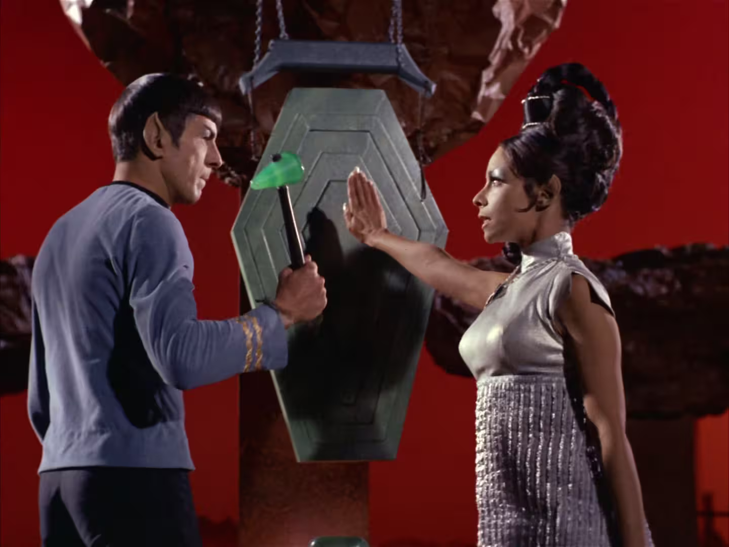 Przede wszystkim to finałowa rozmowa Spocka z T'Pring. Rozegrała wszystkie trzy scenariusze jakoby jako zwycięskie. Spock wygrywa i daje rozwód, Spock wygrywa i nie daje rozwodu, Kirk wygrywa i nie chce jej jako żony. Niby wszystko zimne i wyrachowane, ale to nie prawda. W każdym scenariuszu jej ukochany jest żywy. Co świadczy o tym, że ona ma więcej skrywanego uczucia, niż to się nam wydaje.