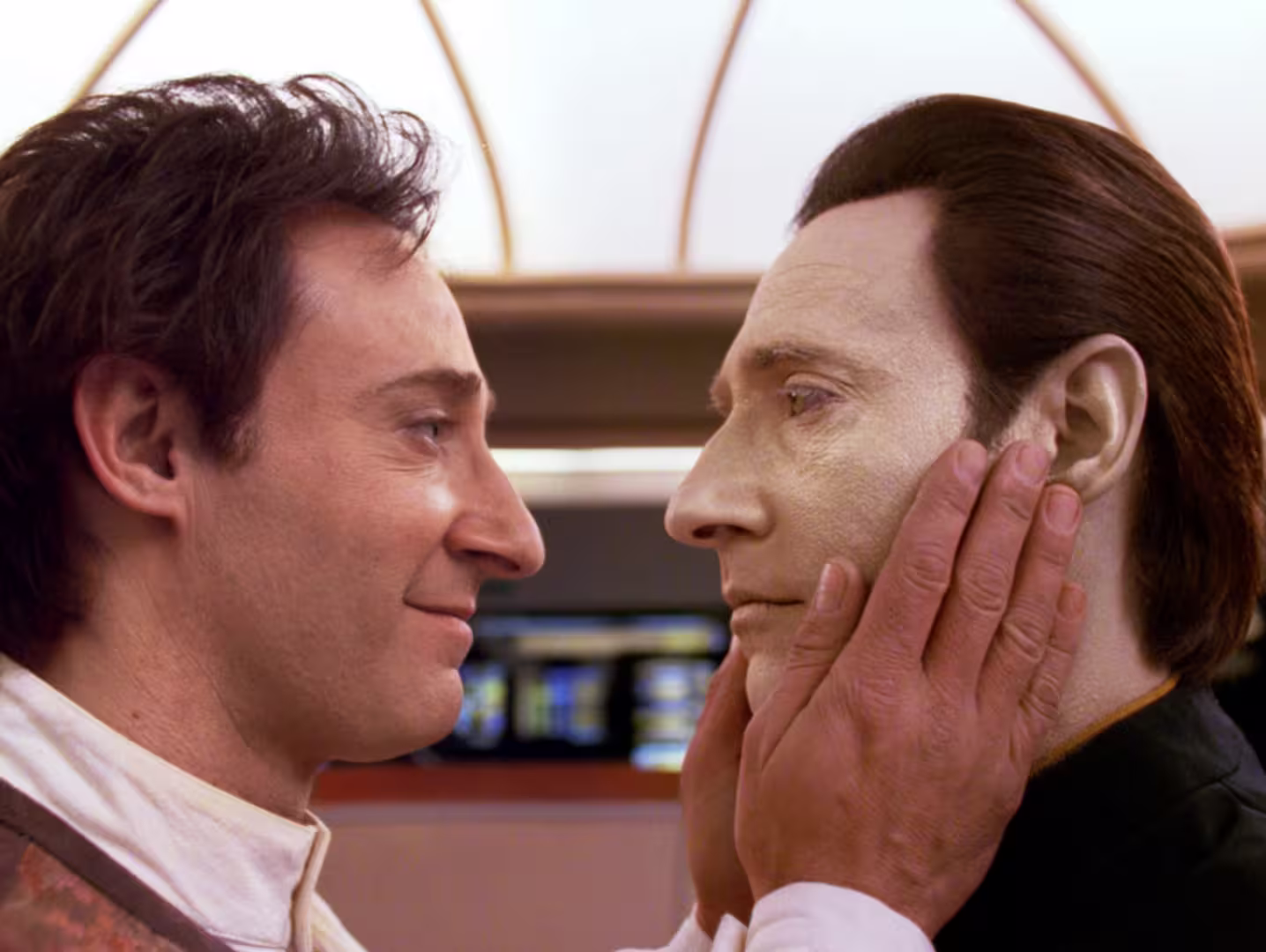 Przyznam, że podobał mi się pomysł wizji ukrytych w mózgu Daty. Po raz kolejny mogliśmy zobaczyć jego "ojca" – doktora Soonga, jako postać występującą w tych snach. Tym razem widzieliśmy go jako dość młodego gościa, zatem Brent Spiner wystąpił bez "makijażu". Sam Data zaś jest na tyle zaintrygowany owymi wizjami, że ryzykuje stopienie swych obwodów, by dowiedzieć się więcej o Soongu. Przyznam że moja sympatia do tego androida po raz kolejny wzrosła. Z kolei zachowanie Worfa po otrzymaniu niepewnej informacji o ojcu było dość typowo klingońskie – najpierw kogoś zwymyślał, potem coś rozwalił... Ale trzeba przyznać, że był usprawiedliwiony – nie co dzień dostaje się taką wiadomość, a natura Klingona zobowiązuje.