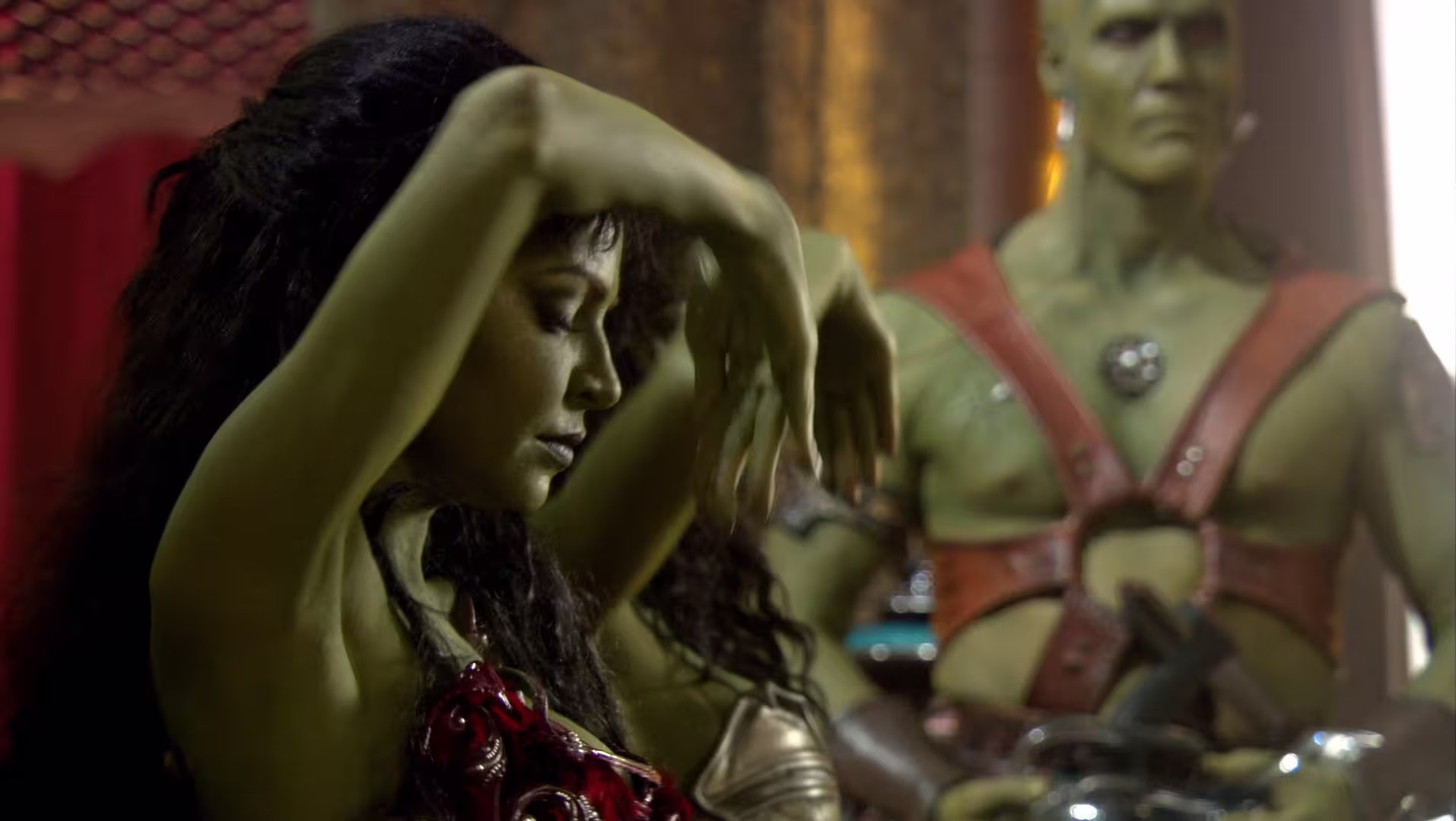 Same Orionki, też trzeba przyznać, przyjemny widok 🙂 . Trochę nie z tej bajki, i trochę żal aktorek, które trzeba było całe pomalować na zielono ale i tak.... 🙂 . Ostatnia scenka oczywiście zgodna z zasadą "10 sekund" [Zawsze można znaleźć w tych serialach taki moment na "nie", w którym po 10 sekundach następuje pocałunek, leci szczęśliwa muzyczka i wszystkim robi się cieplutko i milutko na koniec odcinka... i oczywiście chcą zobaczyć następny... trik stary jak świat - ale działa nadal :)].