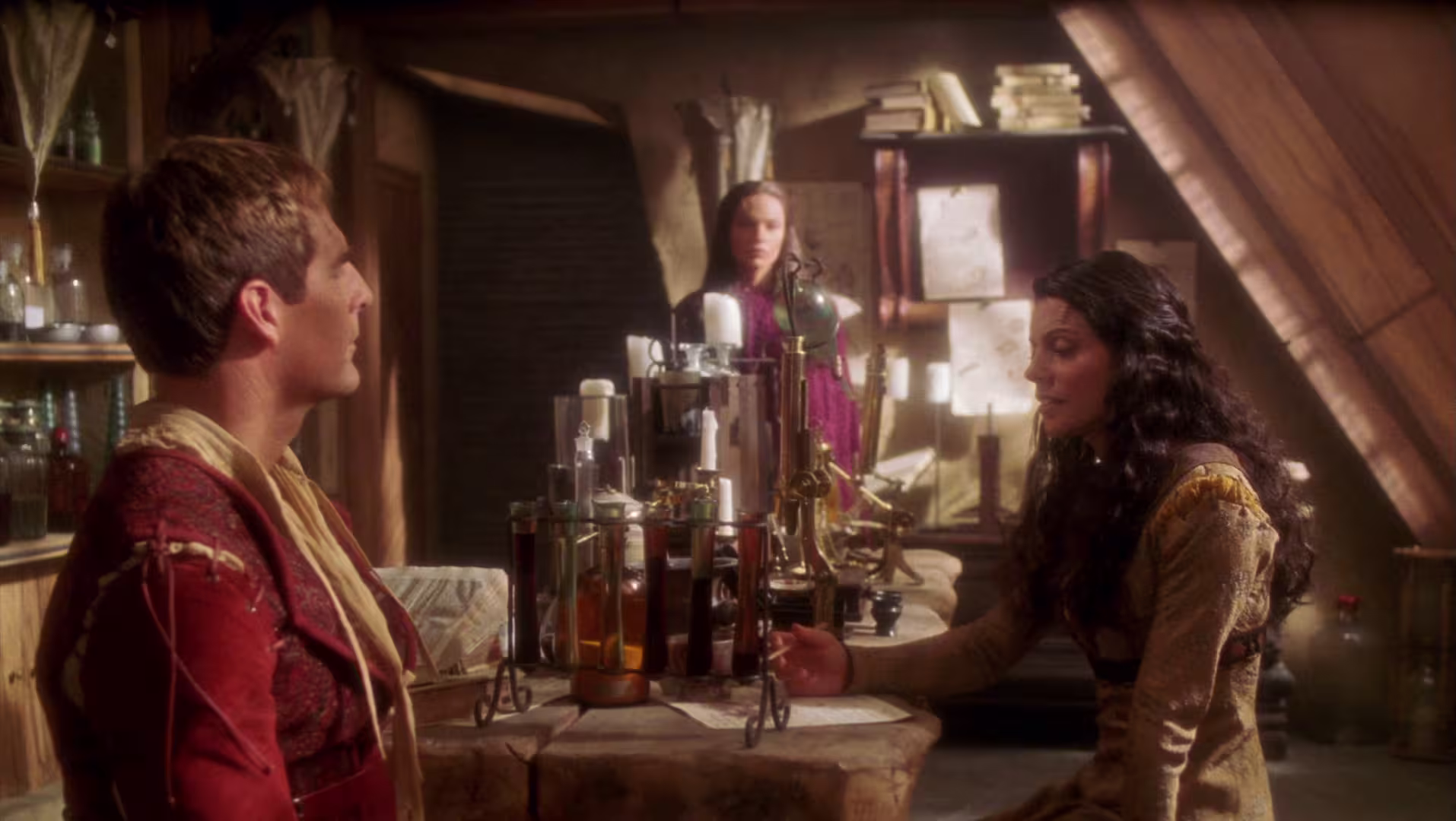 Włamują się do niego pod osłoną nocy, ale do samego rekatora już dojść nie mogą - znajduje się on pod budynkiem, a zejście chronione jest polem siłowym. Dalszy tok śledztwa zostaje przerwany przez kobietę, która zjawia się w sklepie niespodziewanie i celuje do obu oficerów z kuszy. Oskarża ich, że "nocne dostawy" wywołują chorobę wśród miejscowej ludności. Oskarżenia kończą się w momencie, kiedy po cichu nadchodzi T'Pol i obezwładnia obcą. Archer postanawia zanieść ją do jej domu. Adres znajduje w jej dokumentach. Kobieta nazywa się Riaan. Kiedy się budzi, Archer mówi, że jest detektywem z innego miasta i otrzymał zadanie dowiedzieć się, co dzieje się w sklepie z antykami oraz co powoduje epidemię. Kapitan obiecuje Riaan przyjść do niej następnego dnia i dokładnie całą sytuację omówić.
