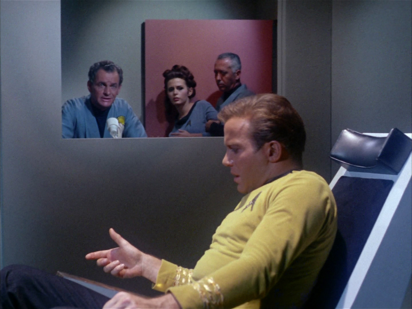 3. W gruncie rzeczy Spock i Bones odpowiadają za bardziej realistyczny odcinek psychoterapii, nie korzystając z magicznego fotela, a (ok, z pomocą wolkańskiego rytuału) jedynie stymulując i badając wspomnienia pacjenta, przynoszą mu ukojenie. Przy czym to wszystko jest tylko efektem ubocznym, bo chodzi im przecież o wyciągnięcie szczegółowych informacji o grożącym Kirkowi niebezpieczeństwie.