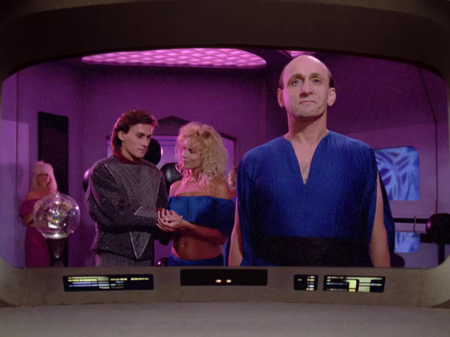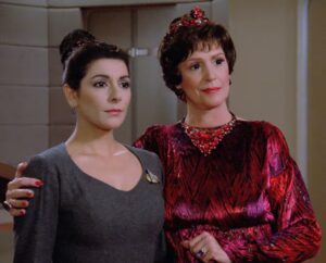 Przygotowania ślubne powodują kłótnie i przekpiwanie się dwóch rodzin, nie wspominając o mieszanych uczuciach poprzedniego kochanka Troi, komandora Williama Rikera.