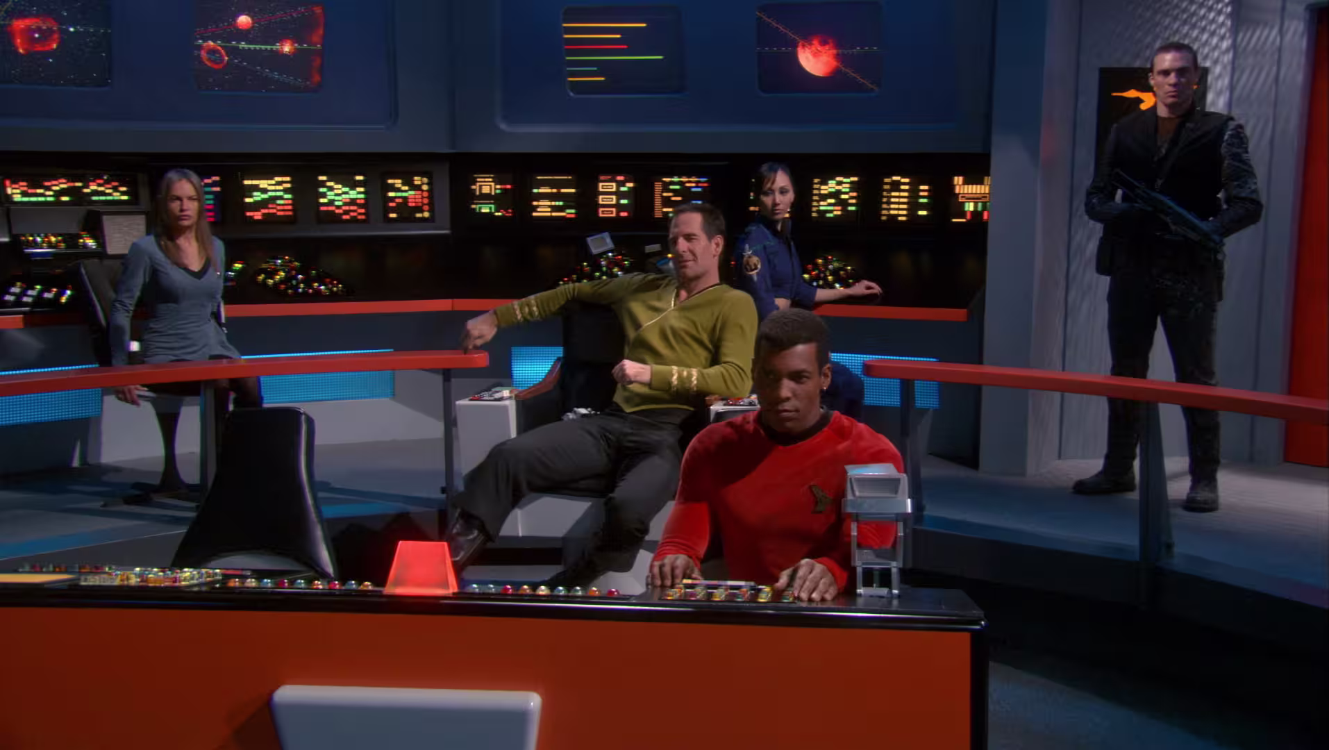 Przede wszystkim samo zakończenie odcinka. Kropki znów zaatakowały ale - sam moment w którym Hoshi wychodzi na mostek i mówi "Empress Sato" - genialne 🙂 . Również miło było zobaczyć załogę w klasycznych TOSowych uniformach.