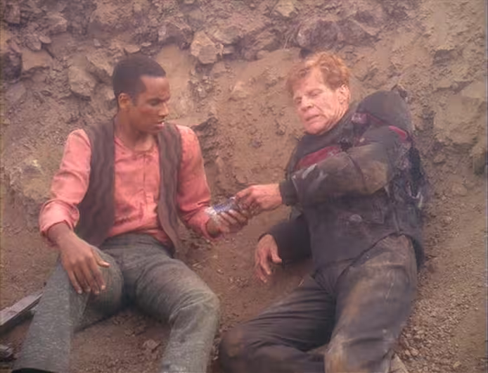 Uwięziony na planecie atakowanej przez Klingonów, Jake Sisko panikuje w czasie walk.