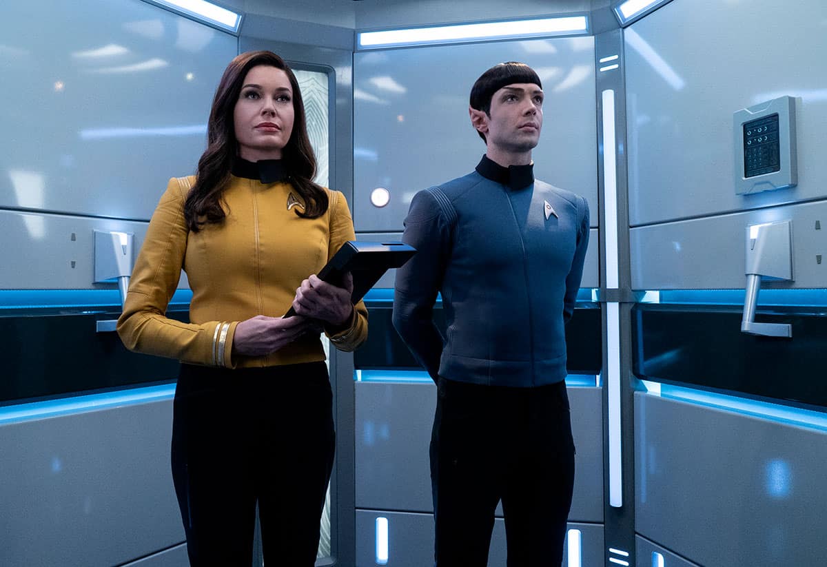 Spock najpierw zachowuje się jak typowy mundurowy, a potem prowadzą rozmowę, która może i byłaby spoko, gdyby nie przekręcała o 180 stopni charakteru Spocka (a i Una też wypada przynajmniej dziwnie - szkoda, bo nawet Discovery jej za bardzo nie ruszało).