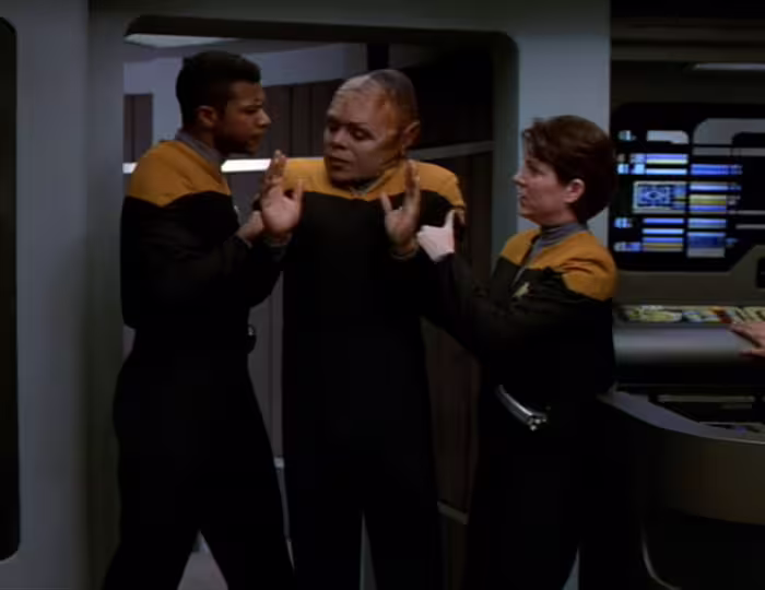 Niewyjaśniona awaria transportera powoduje, że przesyłani równocześnie Tuvok i Neelix materializują się jako jedna istota - Tuvix - będąca połączeniem zarówno fizycznym, jak i umysłowym obydwu członków załogi.
